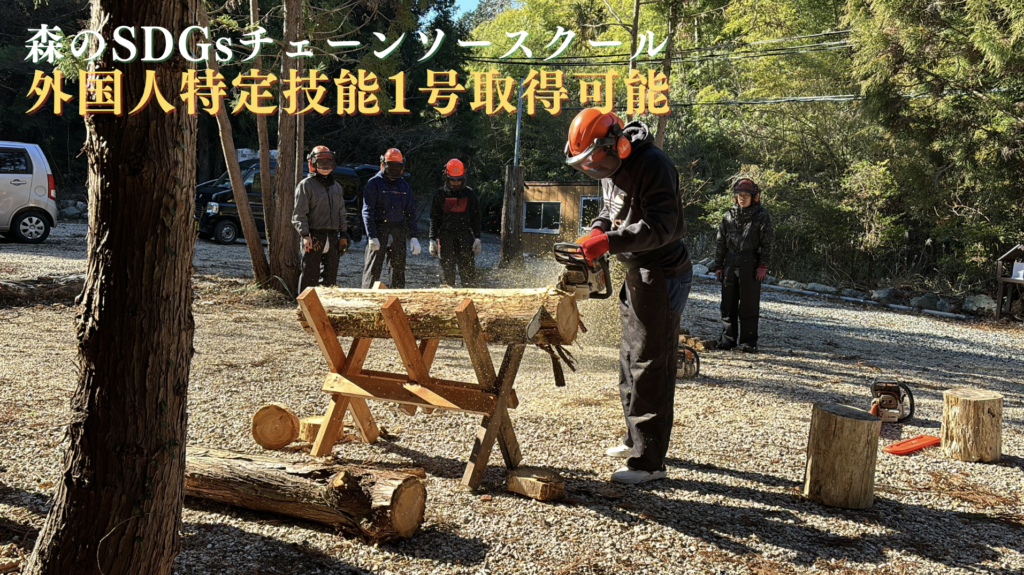 災害時にも重要な役割を果たし、その使用には高い技術と安全管理が求められます。スクールでは、チェーンソーの基礎知識やメンテナンス、伐採技術を学びながら、災害復旧や地域振興に貢献できる人材を育成していきます。また、若年層に向けて即戦力となる林業の専門技術を提供し、外国人留学生にも日本語と林業技術を教えることで、多様性を尊重した人材育成「人や国の不平等をなくそう」を進めています
